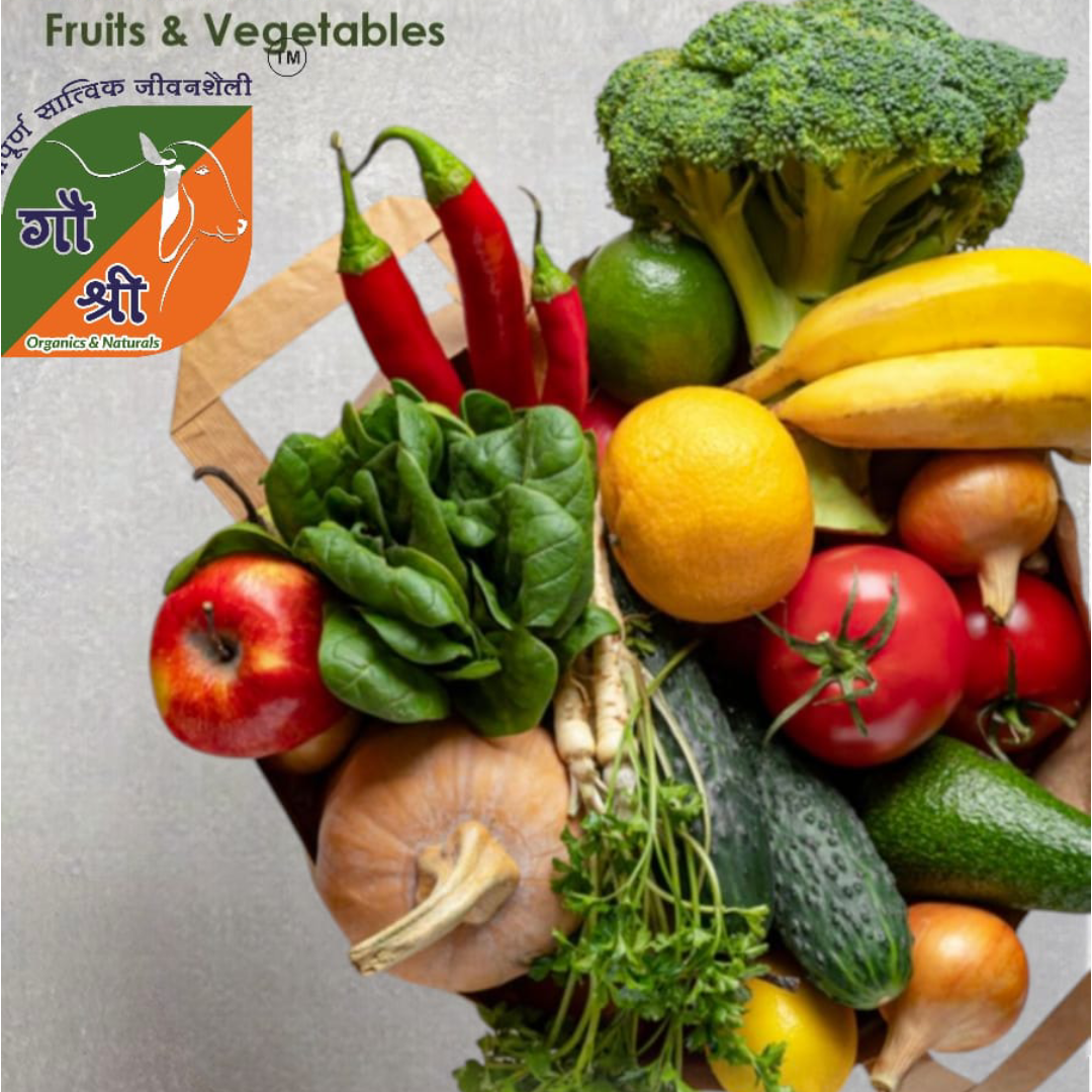 Experience the freshness and purity of Gaushree Organics Vegetables & Fruits, cultivated using natural, organic farming methods without synthetic pesticides, fertilizers, or harmful chemicals. Grown in nutrient-rich soil with traditional and sustainable techniques, our produce ensures maximum freshness, superior taste, and high nutritional value for a healthier lifestyle.